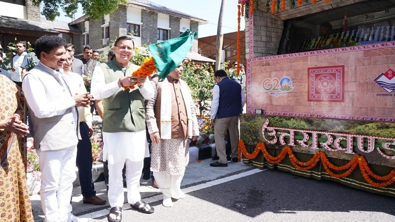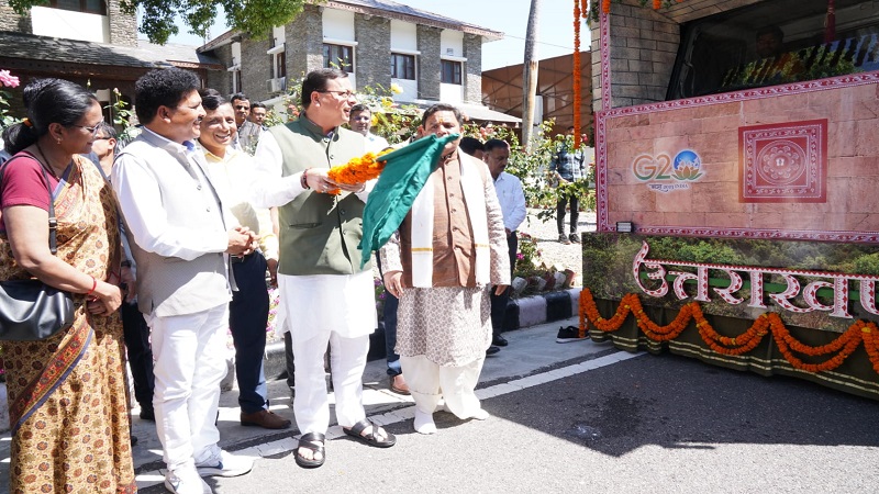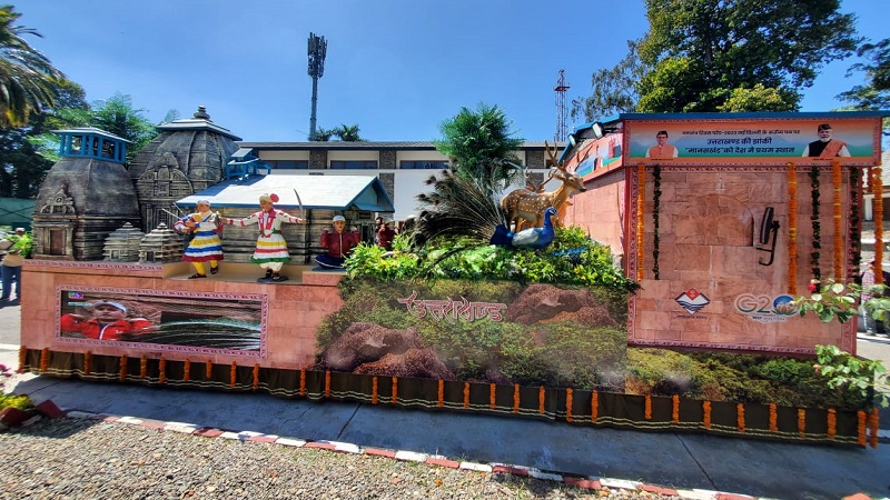 देहरादून, खबर न्यू इंडिया (न्यूज़ डेस्क): मुख्यमंत्री पुष्कर सिंह धामी ने मुख्यमंत्री आवास से गणतंत्र दिवस परेड-2023 में प्रथम स्थान पर रही उत्तराखण्ड राज्य की झांकी ‘मानसखण्ड’ को प्रदेश के जनपदों/ब्लॉक मुख्यालयों तथा मुख्य स्थानों पर प्रदर्शन हेतु फ्लैग ऑफ किया। गणतंत्र दिवस परेड-2023 में विभिन्न राज्यों व भारत सरकार के मंत्रालयों की 27 झांकियों में उत्तराखण्ड की मानसखण्ड झांकी को प्रथम स्थान प्राप्त हुआ। कर्त्तव्य पथ पर पहली परेड में उत्तराखण्ड को प्रथम स्थान मिलना एक बड़ी उपलब्धि है। उत्तराखण्ड गठन से अब तक पहली बार राज्य की झांकी को प्रथम स्थान प्राप्त हुआ है। मानसखण्ड झांकी में जागेश्वर मंदिर, कार्बेट नेशनल पार्क, ऐपण आर्ट, योग तथा वनों का समावेश किया गया था। इस उपलब्धि से उत्तराखण्ड की धार्मिक, सांस्कृतिक धरोहर, कला एवं संस्कृति का प्रचार-प्रसार पूरे विश्व में हुआ। 05 अप्रैल, 2023 से 18 मई 2023 तक प्रदेश के ब्लॉक मुख्यालयों एवं मुख्य शहरों में झांकी का प्रदर्शन जनमानस के सम्मुख किया जाएगा। मानसखण्ड झांकी के संबंध में 02 मिनट की वीडियो भी तैयार की गई है। इस शॉर्ट फिल्म का एल.ई.डी. के माध्यम से जन सामान्य हेतु प्रसारण किया जाएगा। समस्त जनपद मुख्यालयों पर जिलाधिकारी के सहयोग से स्थानीय विधायक की उपस्थिति में झांकी से सम्बन्धित कार्यक्रमों का आयोजन किया जाएगा।