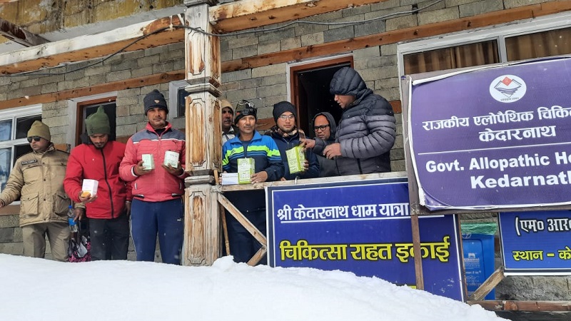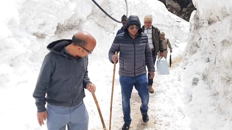 केदारनाथ धाम पैदल यात्रा के पहले पड़ाव गौरीकुंड से पैदल शुरू हुआ सचिव स्वास्थ्य का काफिला दोपहर बाद केदारनाथ धाम में जाकर रूका। इस दौरान रास्ते में मौसम का बदला मिजाज भी देखने को मिला। यात्रा मार्ग पर जगह-जगह भारी बर्फ जमी हुई देखने को मिली। बर्फबारी के बावजूद हर मेडिकल रिलीफ प्वाइंट पर स्वास्थ्य विभाग की टीम मुस्तैद नजर आई। स्वास्थ्य सचिव ने यात्रा मार्ग पर पड़ने वाले प्रत्येक मेडिकल रिलीफ प्वाइंट का बारीकी से निरीक्षण कर दवाओं का स्टॉक, ऑक्सीजन सिलेंडर व अन्य सामान का स्टॉक जांचा। इसके साथ ही स्वास्थ्य सचिव ने टेली मेडिसन यूनिट का भी निरीक्षण किया। स्वास्थ्य सचिव ने कहा टेलीमेडिन सेवा स्वास्थ्य संबधी गंभीर परिस्थिति उत्पन्न होने पर यह यात्रियों के लिए वरदान साबित होगा। इसके द्वारा किसी भी प्रकार की गंभीर स्थिति में 24 घंटे विशेषज्ञ चिकित्सकों की सलाह प्राप्त की जा सकती है। जिससे बीमारी का तुंरत उपचार शुरू हो सकेगा। इस दौरान उन्होंने स्वास्थ्य अधिकारियों-कर्मचारियों को पूर्ण सेवाभाव और मनोयोग से यात्रियों की स्वास्थ्य जांच व सहयोग करने की अपील की। स्वास्थ्य सचिव ने स्वास्थ्य सेवाओं पर संतुष्टि जाहिर की। इस दौरान उनके साथ डिप्टी सीएमओ रूद्रप्रयाग डॉ बिमल गुसाईं, आईसीबीसीसी चमोली के अधिकारी श्री उदय सिहं रावत समेत अन्य स्वास्थ्य अधिकारी और कर्मचारी मौजूद रहे।