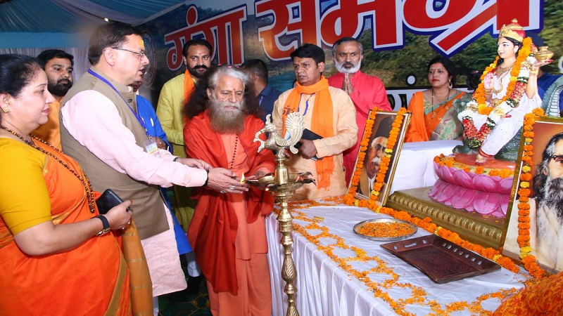 सीएम धामी ने परमार्थ निकेतन में आयोजित गंगा समग्र अविरल गंगा निर्मल गंगा कार्यक्रम का किया शुभारंभ