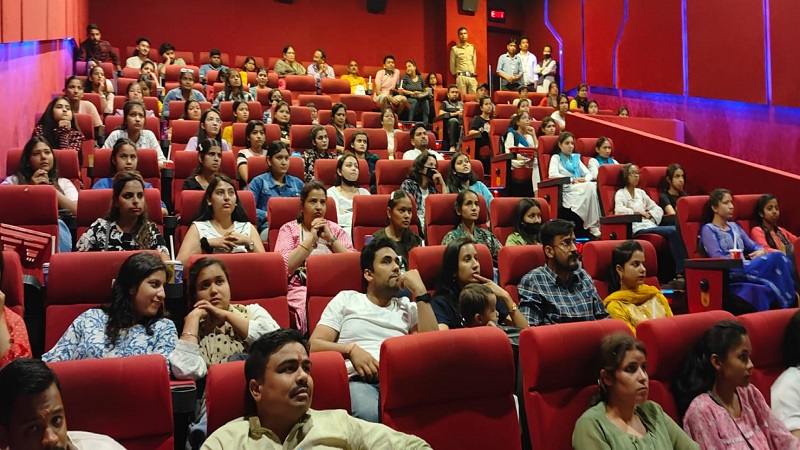 देहरादून, खबर न्यू इंडिया (न्यूज़ डेस्क): आज देहरादून के टाइम स्क्वायर मॉल में दोपहर 12 बजे के शो में उत्तराखंड राज्य महिला आयोग की अध्यक्ष ने महाविद्यालयों की 96 छात्राओं व सामाजिक महिलाओं के साथ शाश्वत भारत ट्रस्ट के सहयोग द्वारा द केरल स्टोरी मूवी देखी। उत्तराखंड राज्य महिला आयोग की अध्यक्ष कुसुम कण्डवाल ने छात्राओं को फ़िल्म दिखाते हुए कहा कि यह फ़िल्म केरल में हुई अनेको घटनाओं को उजागर करते हुए आप सब को जागरूक करने का काम भी करेगी। साथ ही उन्होंने वहां उपस्थित छात्राओं को जागरूक करते हुए यह संदेश भी दिया कि हमे अपनी संस्कृति और संस्कारों को कभी नही छोड़ना चाहिए साथ ही हमे सोशियल मीडिया जैसे प्लेटफार्म पर अनजान व्यक्तियों के संपर्क से दूरी बना कर रखनी चाहिए। सदैव सतर्क रहते हुए अपने माता पिता के साथ अपनी दैनिक दिनचर्या को साझा भी करना चाहिए।