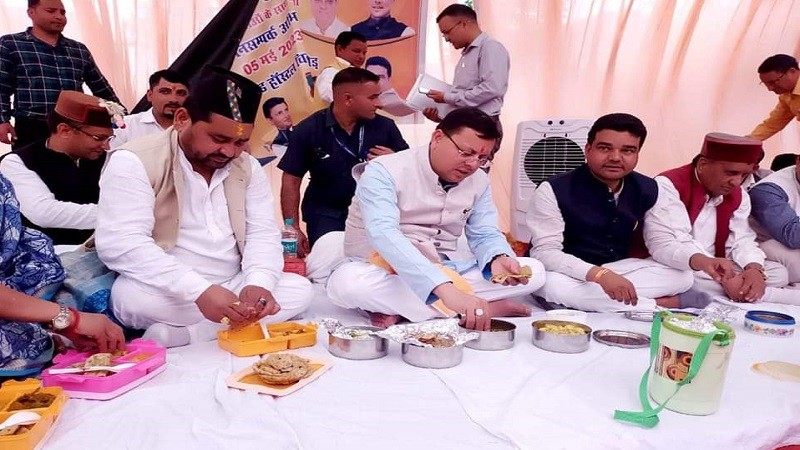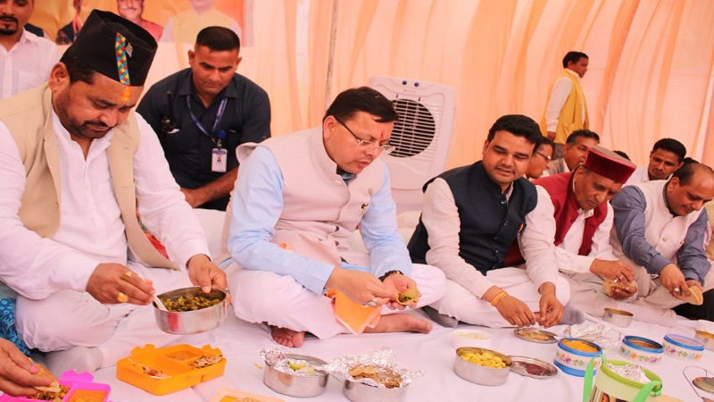 सीएम धामी ने पार्टी कार्यकर्ताओं के साथ किया भोजन