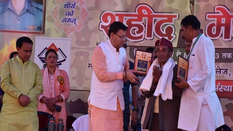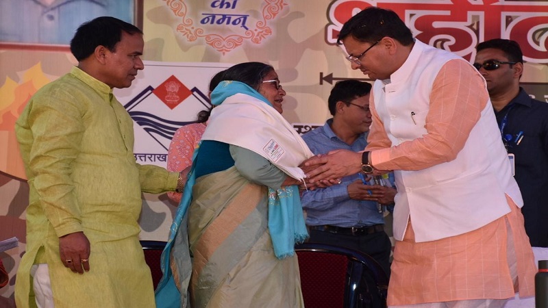 उन्होंने कहा कि आज प्रधानमंत्री नरेन्द्र मोदी के नेतृत्व में देश मजबूत हाथों में है। अब सुरक्षा में लगे सैनिकों को दुश्मन की गोलाबारी का जवाब देने के लिए सरकार से अनुमति लेने की आवश्यकता नहीं पड़ती। आज मोदी जी के नेतृत्व में हमारी सेना ’’शठे शाठयं समाचरेत’’ के सिद्धांत का अनुसरण कर अपने सभी दुश्मनों के दांत खट्टे करने का माद्दा रखती है। आज सेना का मनोबल अभूतपूर्व रूप से बढ़ा है। अब सेना को निर्णय लेने की पूरी छूट है। मुख्यमंत्री ने कहा कि पराक्रम सदैव हमारी सेना के भीतर भरा हुआ था। मगर उस पराक्रम का सम्मान, सैनिकों के जीवन में बदलाव और उनके लिए संवेदनशील होकर निर्णय लेने का काम प्रधानमंत्री नरेंद्र मोदी ने किया। हमारी सरकार का प्रयास रहता है कि हम शहीदों के अभूतपूर्व योगदान को हमेशा याद रखें। अपने वीर सैनिकों को सम्मान देने के लिए ही उत्तराखंड की वीरभूमि में एक विशिष्ट सैन्य धाम का निर्माण कार्य किया जा रहा है। हमने सैनिकों और पूर्व सैनिकों के हित में कई महत्वपूर्ण योजनाएं प्रारंभ की हैं। सीमा पर मोदी सरकार ने जहां एक ओर ऑल वेदर रोड बनाई हैं वहीं दूसरी ओर आज मेक इन इंडिया अभियान के तहत बुलेट प्रूफ जैकेट और हथियारों का निर्माण अपने देश में ही किया जा रहा है। उन्होंने कहा कि जब तक हम शहीदों के सपनों का उत्तराखंड नहीं बना देते तब तक चैन से नहीं बैठेंगे, आराम से नहीं बैठेंगे। मुख्यमंत्री ने अंत्योदय के अपने अंतिम लक्ष्य को पूरा करने एवं उत्तराखंड को भारत का सर्वश्रेष्ठ राज्य बनाने के अपने “विकल्प रहित संकल्प“ को साकार करने में सभी के सहयोग की अपेक्षा की।