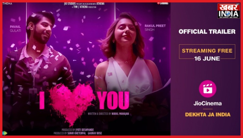 (बॉलीवुड डेस्क): बॉलीवुड एक्ट्रेस रकुल प्रीत सिंह स्टारर फिल्म 'आई लव यू फिल्म' 16 जून को रिलीज हो रही है. इसे आप ओटीटी प्लेटफॉर्म यानी कि जियो सिनेमा पर घर बैठे आराम से फ्री में देख सकते हैं. इस फिल्म का निर्देशन निखिल महाजन ने किया है. वही रोमांटिक थ्रिलर फिल्म 'आई लव यू' का ट्रेलर भी रिलीज़ हो गया है। एक मिनट के ट्रेलर ने दर्शकों को उत्सुकता को बढ़ा दिया है। फिल्म के ट्रेलर को रकुल प्रीत सिंह ने अपने इंस्टाग्राम अकाउंट पर भी शेयर किया है। उन्होंने ट्रेलर शेयर करते हुए लिखा, 'यदि आप प्यार की तलाश कर रहे हैं, तो करीब से देखें।' फिल्म का ट्रेलर जियो स्टूडियोज के यूट्यूब चैनल पर रिलीज किया गया है। एक मिनट एक सेकेंड का ये ट्रेलर सस्पेंस और थ्रिलर से भरा है। इस 1 मिनट 1 सेकेंड के ट्रेलर में रकुलप्रीत सिंह और पावेल गुलाटी की लव स्टोरी दिखाई गई है.