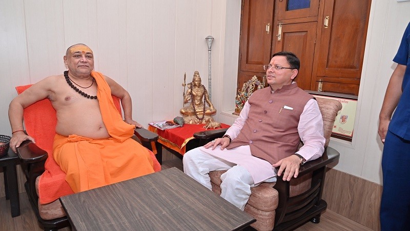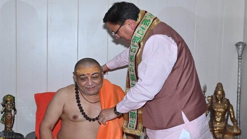 सीएम धामी ने कनखल स्थित जगतगुरू आश्रम में जगतगुरू स्वामी राजराजेश्वराश्रम से की शिष्टाचार भेंट
