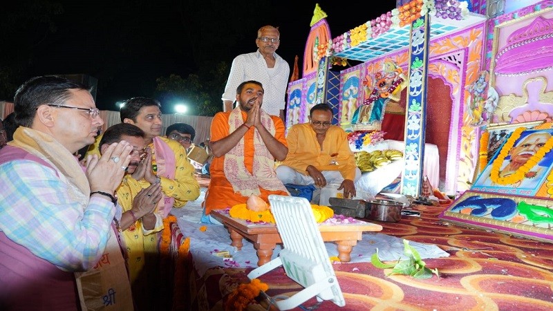 टनकपुर /देहरादून, खबर न्यू इंडिया (न्यूज़ डेस्क): शुक्रवार को टनकपुर में मुख्यमंत्री पुष्कर सिंह धामी ने खाटू श्याम दरबार के दर्शन कर टनकपुर में खाटू श्याम मित्र मंडली के तत्वाधान में उत्सव गार्डन में खाटू श्याम जागरण में दीप प्रज्वलित कर प्रतिभाग किया । मुख्यमंत्री धामी ने देर शाम खाटू श्याम के दर्शन एवं पूजा अर्चना कर प्रदेश जनता के सुख और समृद्धि शांति की कामना वहीं दर्शन के तत्पश्चात खाटू श्याम मित्र मंडली द्वारा आयोजित भजन संध्या एवं भव्य खाटू श्याम जागरण में देश के प्रसिद्ध कलाकार राहुल राज म्यूजिकल ग्रुप, मास्टर बॉबी, दिल्ली साक्षी अग्रवाल , राजस्थान अजय सिंह बीकानेर , खाटू श्याम के भजन गाकर दर्शकों का मन मोह लिया।