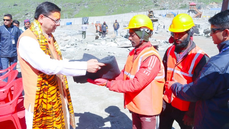 मुख्यमंत्री पुष्कर धामी ने इस दौरान केदारनाथ धाम में पुनर्निर्माण के कार्य कर रहे हैं श्रमिकों से मुलाकात कर वार्तालाप कर उनका हालचाल जाना। उन्होंने प्रशासनिक अधिकारियों को निर्देशित करते हुए कहा कि हमारे श्रमिक विभिन्न विषम परिस्थितियों में यह कार्य रहे हैं, सभी श्रमिकों का विशेष ख्याल रखा जाए उन्हें किसी भी परेशानी का सामना ना करना पड़े। इस दौरान मुख्यमंत्री पुष्कर धामी का सभी तीर्थ पुरोहितों ने स्वागत किया।