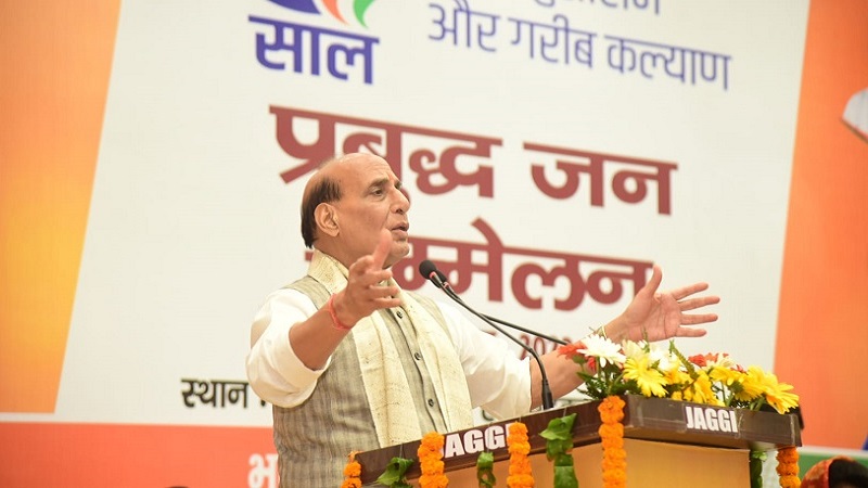 प्रबुद्धजन सम्मेलन में बोले राजनाथ सिंह कहा- हमारे लिए राजनीति सरकार बनाने के लिये नहीं बल्कि समाज व देश बनाने के लिये