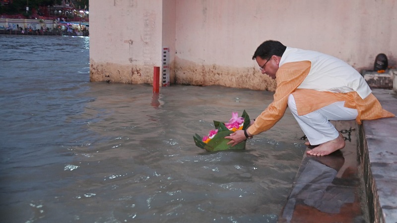 सीएम धामी ने मां गंगा की पूजा अर्चना कर प्रदेश की खुशहाली की कामना की