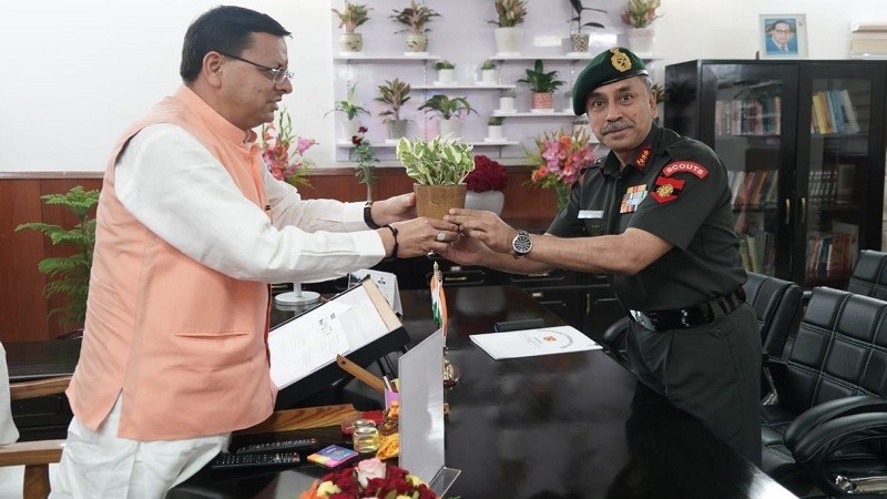 सीएम धामी से मध्य कमान के जनरल ऑफिसर कमांडिंग-इन-चीफ, लेफ्टिनेंट जनरल एनएस राजा सुब्रमणि ने की मुलाकात