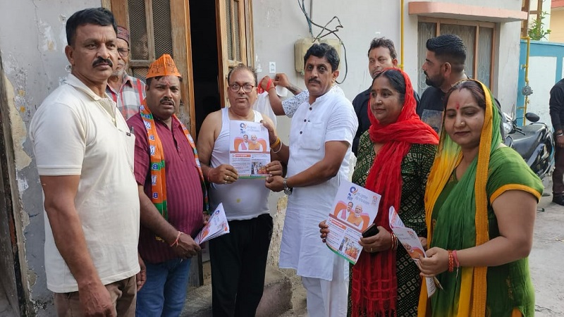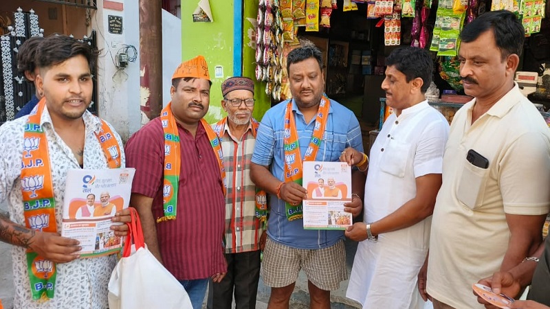 भाजपा महाजनसंपर्क अभियान के तहत घर-घर जाकर मोदी सरकार की जन कल्याणकारी योजनाएं, विकास कार्य एवं नीतियों की जानकारी दी जा रही हैं। इस मौके पर भाजपा कार्यकर्ताओं ने नागरिकों को केंद्र एवं राज्य सरकार की लोक कल्याणकारी योजनाओं की जानकारी भी दी।