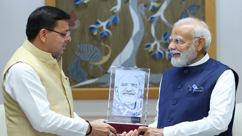 नई दिल्ली/देहरादून, खबर न्यू इंडिया (न्यूज़ डेस्क): मुख्यमंत्री पुष्कर सिंह धामी ने आज नई दिल्ली में प्रधानमंत्री नरेंद्र मोदी से मुलाकात की, इस अवसर पर सीएम धामी ने उन्हें बाबा नीब करौरी महाराज की प्रतिकृति एवं उत्तराखण्ड में उत्पादित चावल भेंट किया। इस दौरान राज्य के विकास से संबंधित कई मुद्दों पर मुख्यमंत्री पुष्कर सिंह धामी और प्रधानमंत्री नरेंद्र मोदी के बीच विस्तार से चर्चा हुई।