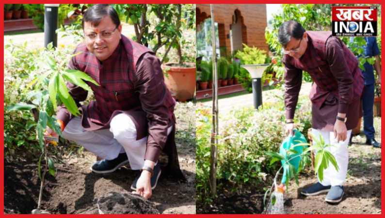 सीएम धामी ने हरेला पर्व पर मुख्यमंत्री आवास परिसर में किया वृक्षारोपण