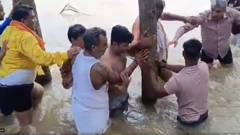 मुजफ्फरनगर,खबर न्यू इंडिया (न्यूज़ डेस्क): पहाड़ो पर लगातार हो रही भारी बारिश को वजह से मुजफ्फरनगर जनपद के कई इलाके बाढ़ की चपेट में आ गए हैं। केंद्रीय मंत्री संजीव बालियान का लोकसभा क्षेत्र भी बाढ़ की चपेट में है। मुजफ्फरनगर से सटकर बह रही हिंडन नदी में बाढ़ आ गई है। बाढ़ के चलते चरथावल क्षेत्र के दर्जनों गांव में हिंडन नदी का पानी भर गया है। दूधली, बुड्ढाखेड़ा और कसौली सहित दर्जनों गांव की हजारों बीघा भूमि में फसलें पूरी तरह से बर्बाद हो गई। क्षेत्र का किसान हाहाकार कर रहा है। बाढ़ की जानकारी मिलते ही केंद्रीय राज्यमंत्री डॉ संजीव बालियान अधिकारियों की टीम लेकर क्षेत्र में पहुंचे। गांव वालों को साथ लेकर केंद्रीय राज्यमंत्री बाढ़ के पानी में उतर गए। उन्होंने हिंडन नदी किनारे दोनों ओर बाढ़ से बर्बाद हुई फसलों का जायजा लिया।