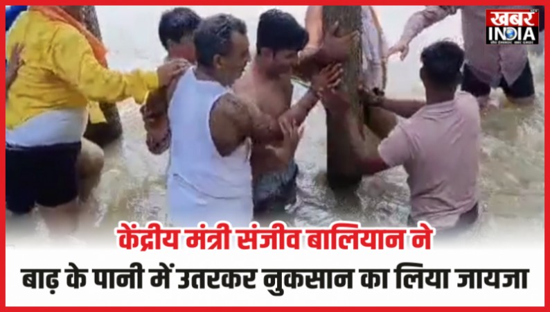 बाढ़ के पानी में उतरे केंद्रीय मंत्री संजीव बालियान, किसानों की बर्बाद हुई फसलों का किया आंकलन