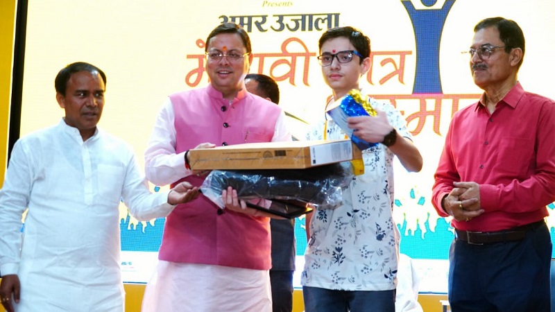 सीएम धामी ने मेधावी छात्र-छात्राओं को किया सम्मानित