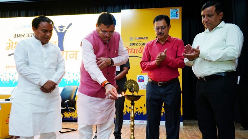 देहरादून, खबर न्यू इंडिया (न्यूज़ डेस्क): मुख्यमंत्री पुष्कर सिंह धामी ने शुक्रवार को आई.आर.डी.टी. सभागार, सर्वे चौक देहरादून में आयोजित 10वीं एवं 12वीं परीक्षा में उत्तीर्ण मेधावी छात्र-छात्राओं के ‘सम्मान समारोह’ कार्यक्रम में प्रतिभाग किया। अमर उजाला द्वारा आयोजित कार्यक्रम में मुख्यमंत्री ने राज्य सरकार की ओर से 94 मेधावी छात्र-छात्राओं को सम्मानित किया। मुख्यमंत्री पुष्कर सिंह धामी ने सभी मेधावियों को संबोधित करते हुए कहा कि उन्हें गर्व का अनुभव हो रहा है, आज वे प्रदेश के उन सर्वश्रेष्ठ बच्चों से मिल रहे हैं, जिन्होंने अपनी प्रतिभा के बल पर यह दिखाया है कि शिखर पर जाने के लिए एक स्पष्ट उद्देश्य होना चाहिए। उन्होंने कहा कि जीवन में कठिन परिश्रम का कोई विकल्प नहीं होता है। शिक्षा से जीवन की सभी चुनौतियों का सामना किया जा सकता है। शिक्षा में भक्ति जैसी सारगर्भिता होनी चाहिए। उन्होंने मेधावी विद्यार्थियों से कहा कि यह जीवन की प्रारंभिक सीढ़ी है। जीवन की प्रत्येक सीढ़ी पर आपको चुनौतियां मिलेंगी, जिन पर आपको विवेक और बुद्धि के बल पर पार पाना होगा। न तो मेहनत का कोई विकल्प होता है और न ही शॉर्ट कट कभी हमें स्थायी सफलता की ओर ले जाता है। इसलिए हमें विकल्प रहित संकल्प लेकर लगातार मेहनत करनी है।
