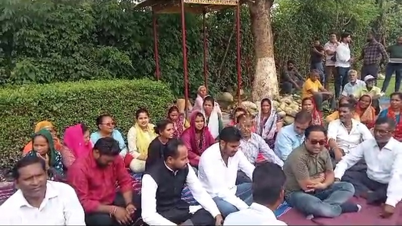 महानगर कांग्रेस अनुसूचित जाति विभाग ने मंदिर परिसर में किया धरना प्रदर्शन
