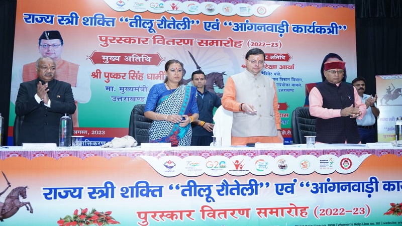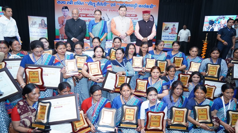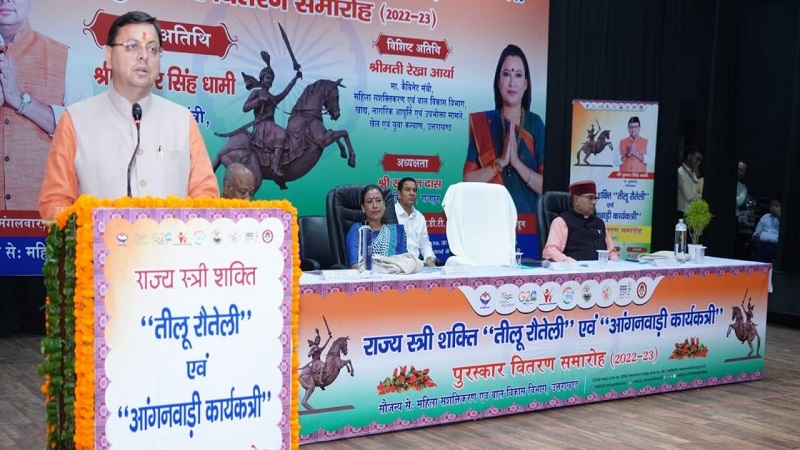 सीएम धामी ने तीलू रौतेली एवं आंगनबाड़ी कार्यकत्री पुरस्कार 2022-23 किये वितरित