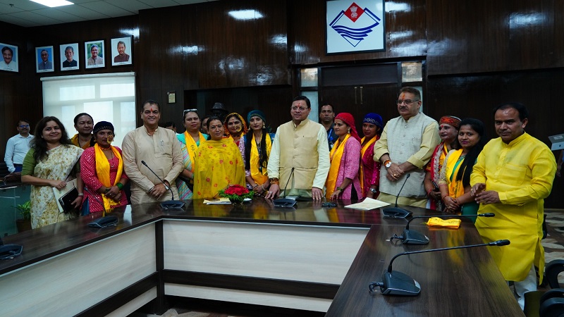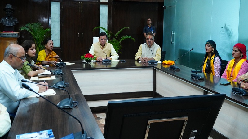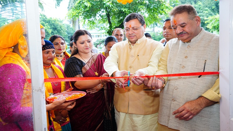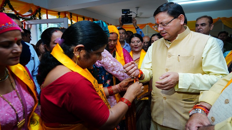 सीएम धामी ने सचिवालय में महिला स्वयं सहायता समूहों द्वारा लगाये गये राखी के स्टॉलों का किया अवलोकन