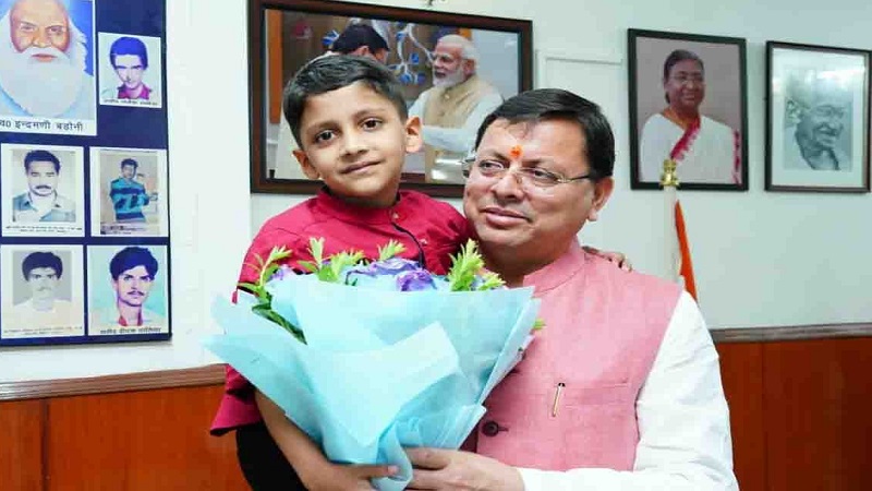सीएम धामी से सबसे कम उम्र के शतरंज खिलाड़ी तेजस तिवारी ने की मुलाक़ात