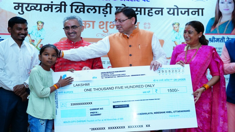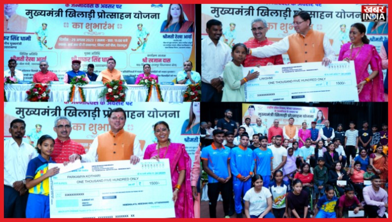 देहरादून, खबर न्यू इंडिया (न्यूज़ डेस्क) : राष्ट्रीय खेल दिवस के अवसर पर मुख्यमंत्री पुष्कर सिंह धामी ने राज्य में ‘मुख्यमंत्री खिलाड़ी प्रोत्साहन योजना’ का शुभारंभ किया। इस योजना से प्रदेश के 14 से 23 वर्ष के 2600 खिलाड़ी लाभान्वित होंगे। इस योजना से प्रत्येक जनपद से बालक एवं बालिका वर्ग में 100-100 खिलाड़ी लाभान्वित होंगे। प्रत्येक खिलाड़ी को प्रतिमाह 02-02 हजार रूपये की छात्रवृत्ति एवं खेल संबंधी उपकरण लेने के लिए प्रतिवर्ष 10-10 हजार रूपये प्रदान किये जायेंगे। सर्वे चौक स्थित आई.आर.डी.टी सभागार में आयोजित कार्यक्रम में मुख्यमंत्री ने कुछ खिलाड़ियों को दो-दो हजार रूपये का चेक प्रदान कर योजना का शुभारंभ किया। मुख्यमंत्री ने मुख्यमंत्री उदीयमान खिलाड़ी योजना के तहत खिलाड़ियों को चेक भी प्रदान किये। कार्यक्रम के दौरान पैरालंपिक खिलाड़ियों एवं नेशनल पावर लिफ्टिंग में गोल्ड मेडल प्राप्तकर्ता अपर पुलिस महानिदेशक अमित सिन्हा को भी सम्मानित किया।