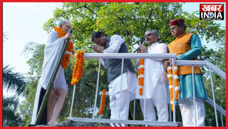 सीएम धामी ने महात्मा गांधी को गांधी पार्क में उनकी मूर्ति पर माल्यार्पण कर दी श्रद्धांजलि