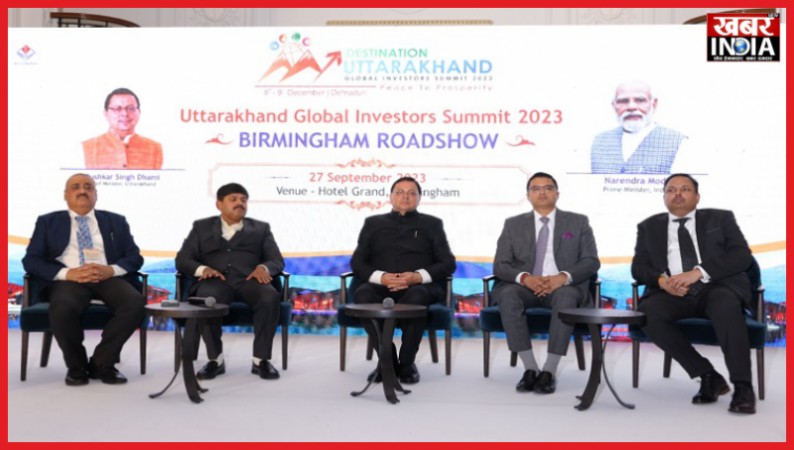 बर्मिंघम/देहरादून, खबर न्यू इंडिया (न्यूज़ डेस्क)। मुख्यमंत्री पुष्कर सिंह धामी ने ब्रिटेन दौरे के दूसरे दिन बर्मिंघम में ग्लोबल इन्वेस्टर्स समिट हेतु आयोजित रोडशो में प्रतिभाग करते हुए बर्मिंघम के विभिन्न उद्योगपतियों के साथ बैठक की। बर्मिघम में आयोजित रोड शो केदौरान शिक्षा, आईटी, हेल्थ, मैनुफैक्चरिंग इन्डस्ट्री से जुड़े 250 से अधिक डेलिगेट्स ने प्रतिभाग किया। रोड शो के दौरान विदेशी निवेशकों ने राज्य सरकार के प्रतिनिधियों से विभिन्न नीतियों के बारे में जानकारी ली। इस दौरान मुख्यमंत्री ने सभी निवेशकों को आगामी दिसम्बर माह में आयोजित होने वाले ग्लोबल इन्वेस्टर समिट हेतु आमंत्रित किया। इसके साथ ही मुख्यमंत्री धामी ने सभी निवेशकों को उत्तराखण्ड सरकार की ओर से पूर्ण सहयोग का भरोसा दिया।