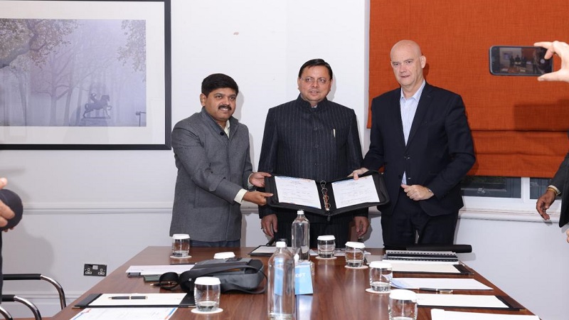 लंदन/देहरादून, खबर न्यू इंडिया (न्यूज़ डेस्क)। मुख्यमंत्री पुष्कर सिंह धामी के ब्रिटेन दौरे के तीसरे दिन भी दुनियाभर के कई निवेशकों के साथ बैठकों का दौर जारी रहा। आज लंदन मे ग्लोबल इन्वेस्टर्स समिट हेतु आयोजित बैठक में मुख्यमंत्री पुष्कर सिंह धामी की उपस्थिति में उत्तराखण्ड सरकार द्वारा दो कंपनियों के साथ 3 हजार करोड़ के इन्वेस्टमेंट एमओयू साइन किए गए जा चुके हैं। जिसमें आगर टेक्नोलॉजी के साथ 2 हजार करोड़ का एमओयू साइन किया गया। आगर टेक्नोलॉजी द्वारा उत्तराखण्ड में लिथियम बैटरी प्लांट्स में निवेश करने की सहमति जताई गई। इसी क्रम में आज फ़िरा बार्सिलोना के साथ 1 हजार करोड़ का एमओयू साइन किया गया। फ़िरा बार्सिलोना यूरोप का प्रतिष्ठित ग्रुप है जो कि कन्वेंशन सेंटर और इवेंट्स मैनेजमेंट में काम करती है। ये विश्वस्तरीय विजनेस फेयर कराने की दक्षता रखते हैं। प्रदेश सरकार की ओर से सचिव उद्योग विनय शंकर पांडेय ने एमओयू में साइन किए।