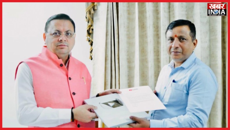 सीएम धामी के ऑफिशियल यूट्यूब चैनल को यूट्यूब द्वारा दिया गया सिल्वर बटन
