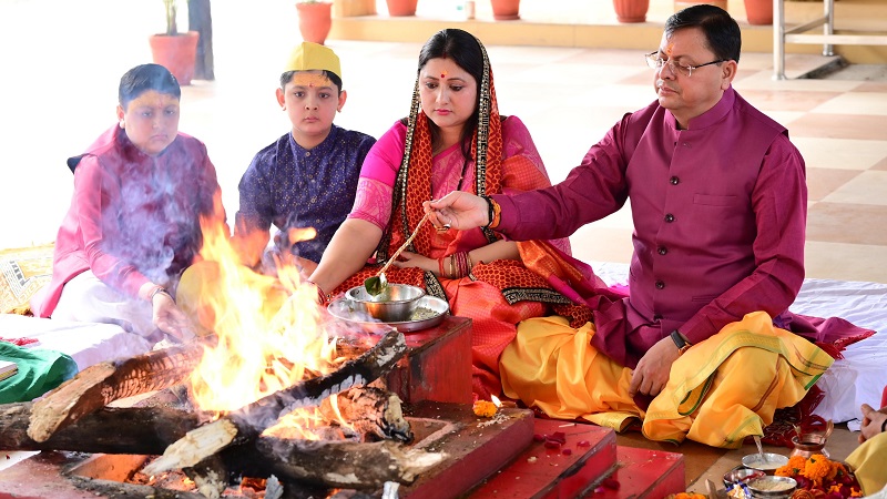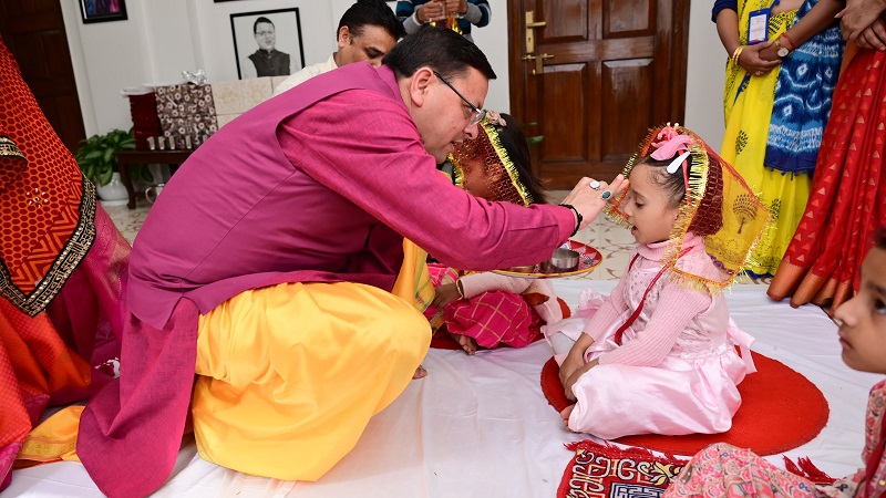 सीएम धामी ने विधि-विधान से किया कन्या-पूजन