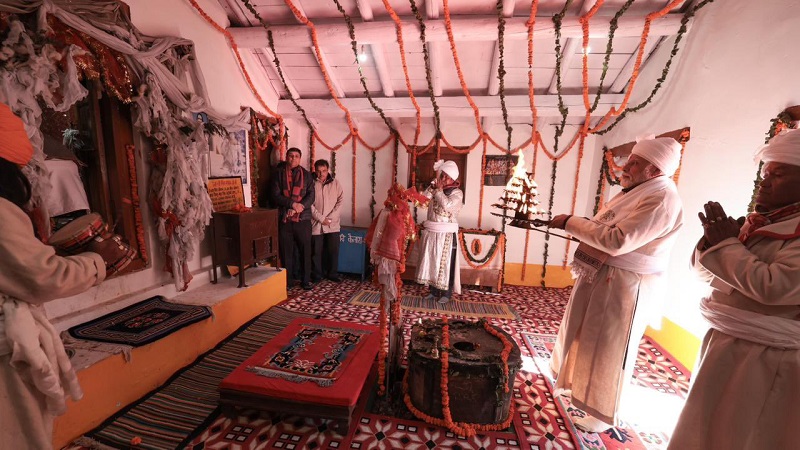 प्रधानमंत्री मोदी अपने निर्धारित कार्यक्रम के तहत 12 अक्टूबर, 2023 को सुबह 8.45 बजे हेलीकॉप्टर से पिथौरागढ़ जनपद में ज्योलिंगकांग हेलीपैड पर उतरे। यहां से दाहिनी ओर करीब डेढ़ किमी की दूरी कार से तय करते हुए हिमालय की चोटी पर स्थित पार्वती सरोवर और शिव मंदिर पहुॅचे। करीब 25 मिनट तक शिव की पूजा और ध्यान किया। आदि कैलाश मंदिर में रं-समुदाय के लामा पुजारियों ने पौराणिक काल से प्रसिद्ध शिव-पार्वती की ‘माटी पूजा’ पूरे विधि विधान के साथ संपन्न की।
