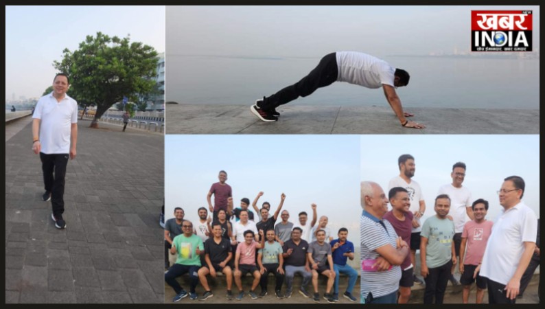 सीएम धामी का मुंबई में मॉर्निंग वॉक योग के साथ ही लोगो का जाना हाल चाल