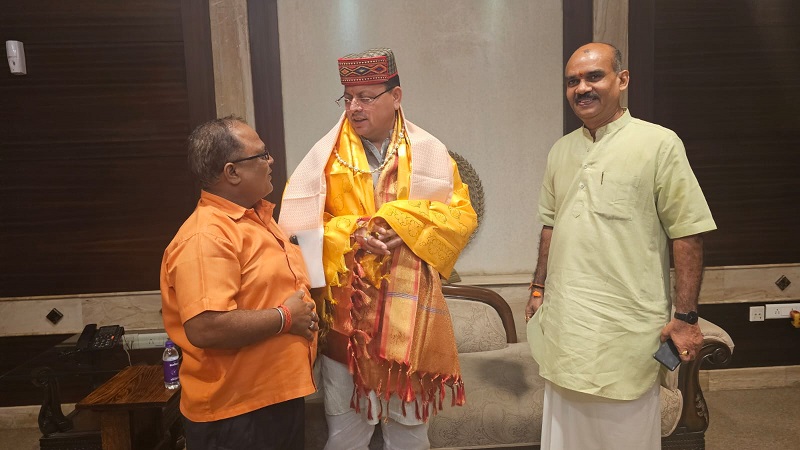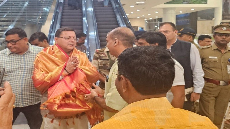 सीएम धामी के चेन्नई एयरपोर्ट पहुंचने पर हुआ स्वागत