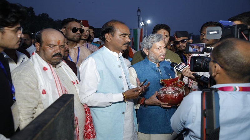 देहरादून, खबर न्यू इंडिया (न्यूज़ डेस्क) : “मेरी माटी मेरा देश” अभियान के अन्तर्गत उत्तराखण्ड से भेजे गए अमृत कलश यात्रा और अमृत महोत्सव समापन समारोह पर उत्तराखण्ड राज्य का नेतृत्व उत्तराखंड के सांसद माला राज्य लक्ष्मी शाह, अजय टम्टा, तीरथ सिंह रावत द्वारा किया गया। सांसदों एवं स्वयंसेवकों द्वारा कर्तव्य पथ पर अमृत कलश के मिट्टी और चावलो को विशाल अमृत कलश में मिश्रित किया गया। उसके उपरान्त कर्तव्य पथ पर राज्यों की ओर से सांस्कृतिक कार्यक्रमों का आयोजन भी किया गया। इस अवसर पर उत्तराखण्ड के सांसदो ने कहा कि उत्तराखंड सैनिक बाहुल्य प्रदेश है ऐसे में जिस तरह से प्रधानमंत्री रेंद्र मोदी द्वारा वीरों और शहीदों का सम्मान किया जा रहा है वो बहुत बड़ा कदम है। कर्तव्यपथ पर आयोजित ‘‘मेरी माटी मेरा देश’’ अभियान के समापन समारोह को प्रधानमंत्री नरेन्द्र मोदी द्वारा संबोधित किया जाएगा।