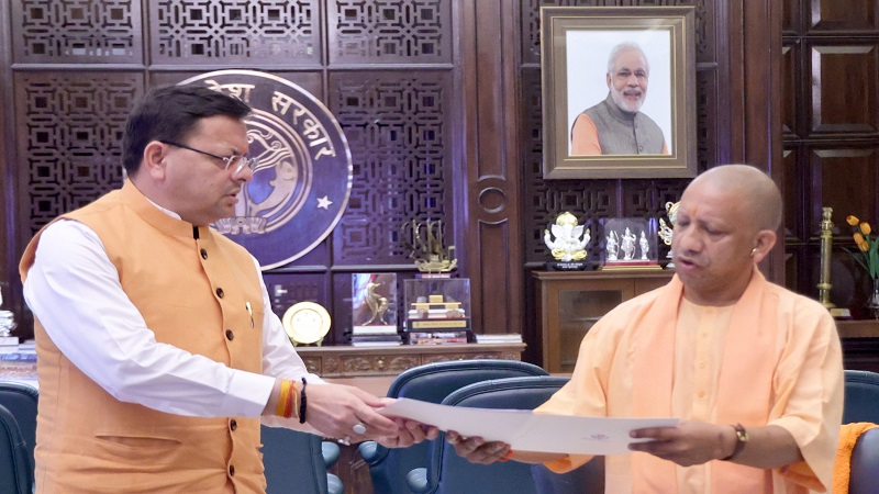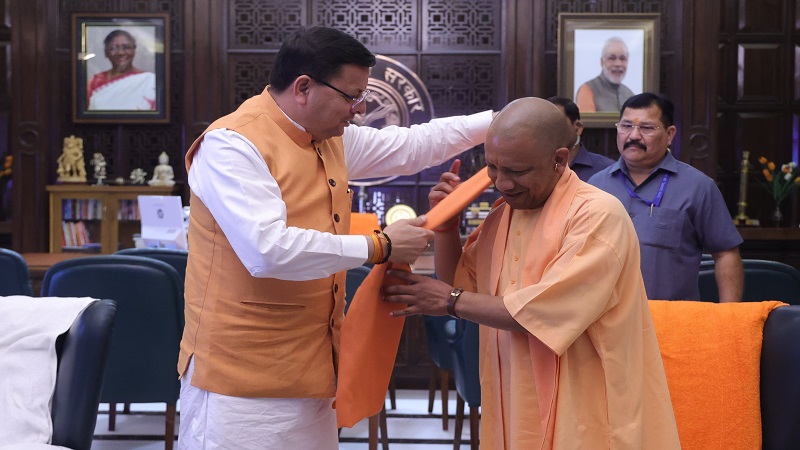 सीएम धामी ने उत्तर प्रदेश के मुख्यमंत्री योगी आदित्यनाथ से की शिष्टाचार भेंट