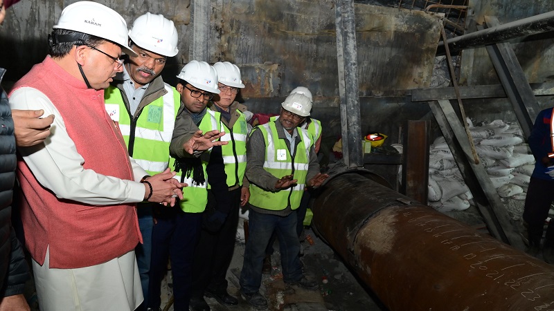 मुख्यमंत्री पुष्कर सिंह धामी ने अधिकारियों से अंदर फंसे श्रमिकों का कुशलक्षेम एवं निरंतर डॉक्टरों, मनोचिकित्सको एवं श्रमिकों के परिवार जनों से अंदर फंसे श्रमिकों की निरंतर वार्ता करवाने के निर्देश दिए। मुख्यमंत्री श्री पुष्कर सिंह धामी ने सिलक्यारा स्थित मीडिया सेंटर में प्रेस ब्रीफिंग करते हुए बताया कि सभी श्रमिक इंजीनियर विशेषज्ञ अधिकारी पूरी शिद्दत एवं मेहनत के साथ हर संभव प्रयास में जुटे हुए हैं। उन्होंने बताया अब तक कुल 52 मीटर पाइप को पुश कर लिया गया है। उन्होंने बताया अंदर फंसे सभी श्रमिकों का स्वास्थ्य सकुशल है। राहत एवं बचाव कार्य में जुटे सभी लोग पूरी ऊर्जा और सकारात्मक भाव के साथ कार्य कर रहे हैं। मुख्यमंत्री पुष्कर सिंह धामी निरंतर अस्थायी सीएम कैम्प कार्यालय, मातली से रेस्क्यू अभियान पर नजर बनाए हुए हैं। आज सुबह वह मातली से श्रमिकों का कुशलक्षेम से जानने सिलक्यारा टनल पर पहुंचे।
