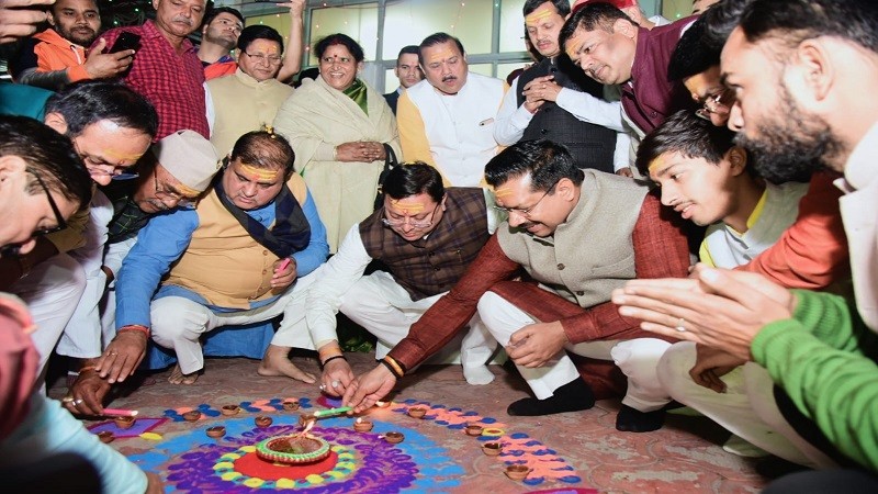 सीएम धामी भाजपा प्रदेश कार्यालय में आयोजित दीपावली महोत्सव कार्यक्रम में हुए शामिल