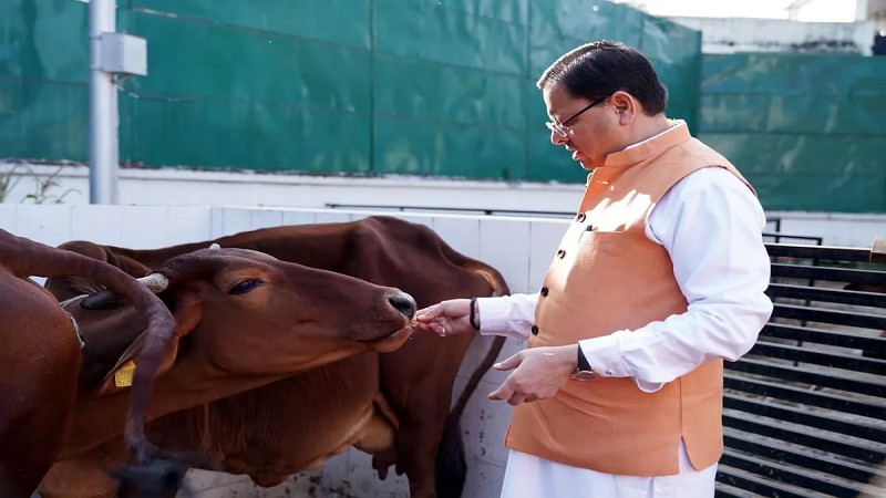 सीएम धामी ने गोवर्धन पूजा पर मुख्यमंत्री आवास में की गौमाता की पूजा