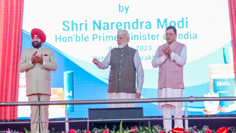 देहरादून, खबर न्यू इंडिया (न्यूज़ डेस्क): प्रधानमंत्री नरेन्द्र मोदी ने शुक्रवार को उत्तराखंड में आयोजित ’उत्तराखंड वैश्विक निवेशक शिखर सम्मेलन 2023’ का उद्घाटन किया, इस अवसर पर प्रधानमंत्री मोदी ने सशक्त उत्तराखंड पुस्तक और ब्रांड हाउस ऑफ हिमालयाज भी लॉन्च किया। राज्य सरकार ने लंबी कसरत के बाद इन उत्पादों के लिए अंब्रेला ब्रांड "हाउस ऑफ हिमालयाज" बनाया है।