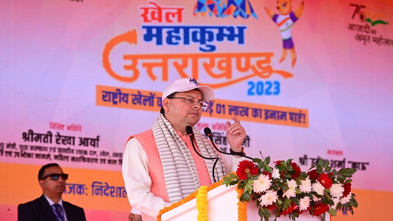 सीएम धामी ने महाराणा प्रताप स्पोर्ट्स कॉलेज में राज्य स्तरीय खेल महाकुंभ का किया शुभारंभ