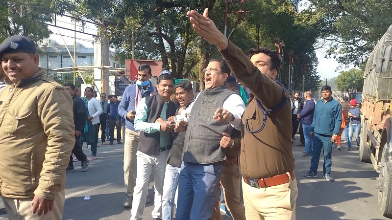 देहरादून, खबर न्यू इंडिया (न्यूज़ डेस्क): संसद मे विपक्षी सांसदों के निलंबन के विरोध मे इंडिया गठबंधन द्वारा का देशभर में विरोध प्रदर्शन किया जा रहा है इसी कड़ी में राजभवन कूच के दौरान हाथीबड़कला के सामने बैरिकेटिंग पर करने के कोशिश करते पुलिस द्वारा गिरफ्तार इंडिया गठबंधन के नेताओं प्रदेश अध्यक्ष कांग्रेस करण माहरा, पूर्व मुख्यमंत्री हरीश रावत, नेता प्रतिपक्ष यशपाल आर्या, कांग्रेस के वरिष्ठ उपाध्यक्ष सूर्यकांत धस्माना, सीपीआई के प्रदेश सचिव समर भंडारी,सीपीआई एम के प्रदेश सचिव राजेन्द्र सिंह नेगी, सीपीआई एमएल के प्रदेश सचिव इंद्रेश मैखुरी जब कार्यकर्ताओं के साथ पुलिस लाइन पहुंचे तो वहां जोरदार नारेबाजी करने के बाद सभा आयोजित की गई जिसका संचालन प्रदेश कांग्रेस कमेटी के वरिष्ठ उपाध्यक्ष सूर्यकांत धस्माना ने किया। प्रदेश कांग्रेस अध्यक्ष करण माहरा ने कहा कि आज देश को मोदी सरकार लोगों को धर्म और जाति में बांट कर तानाशाही की तरफ ले जा रही है और इससे छुटकारा पाने के लिए अब धर्मनिरपेक्ष ताकतों को मिल कर ग्रासरूट पर लड़ाई लड़नी होगी।