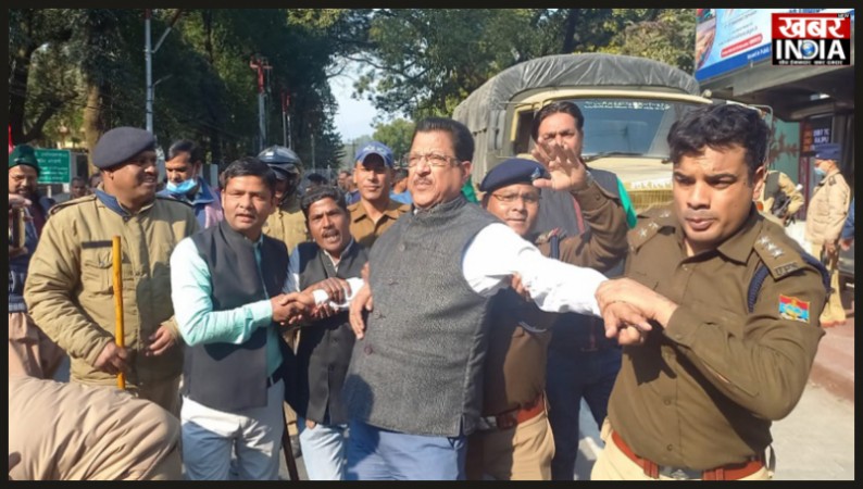 राजभवन कूच के दौरान हिरासत में लिए गये कांग्रेस नेता
