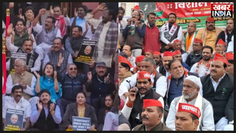 विपक्षी सांसदों के निलंबन को लेकर कांग्रेस, सपा ने दिखाई गठबंधन की ताकत
