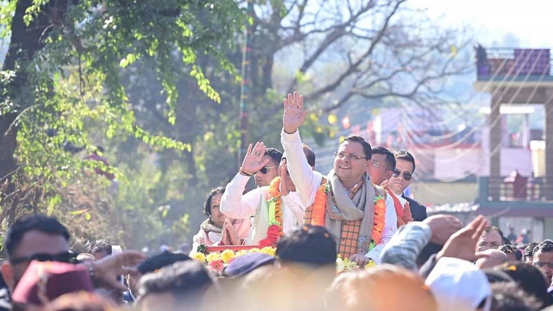 सीएम धामी के बागेश्वर में हुए रोड शो में उमड़ा जन सैलाब