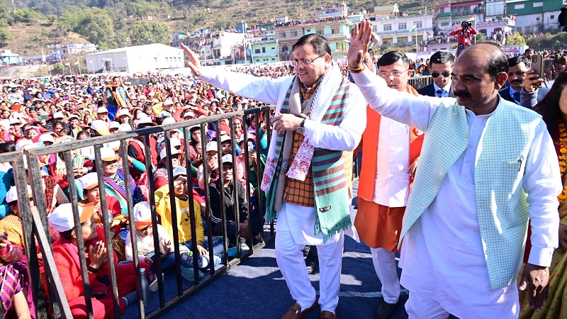 बागेश्वर/देहरादून, खबर न्यू इंडिया (न्यूज़ डेस्क): मुख्यमंत्री पुष्कर सिंह धामी ने मंगलवार को जनपद बागेश्वर के विकास खण्ड कपकोट के केदारेश्वर मैदान में आयोजित (चेलि ब्वार्यूं कौतिक) मातृशक्ति उत्सव कार्यक्रम में प्रतिभाग किया। इस अवसर पर मुख्यमंत्री ने लगभग 100 करोड़ की विभिन्न विभागों की विकास योजनाओं का लोकार्पण एवं शिलान्यास किया। जिसमें 19 करोड़ की 11 विभिन्न योजनाओं का लोकार्पण तथा 81 करोड़ की 26 योजनाओं का शिलान्यास सामिल है। कार्यक्रम को संबोधित करते हुये मुख्यमंत्री ने जनपद बागेश्वर में नशा मुक्ति केंद्र की स्थापना, बागनाथ मंदिर बागेश्वर के संग्रहालय में 90 प्रतिमाओं की स्थापना किये जाने, बदियाकोट कर्मी तलाई में 100 एम.टी. गोदाम तथा आवासीय भवन का निर्माण किये जाने, विधानसभा क्षेत्र कपकोट के सामुदायिक स्वास्थ्य केंद्र को अपर जिला चिकित्सालय बनाये जाने, शामा में मल्टी लेवल पार्किंग का निर्माण किये जाने के साथ जनपद बागेश्वर के भराड़ी में मल्टी पार्किंग से संबंधित प्रस्तावों को मंजूर किये जाने की घोषणा की। मुख्यमंत्री ने सरयू के मूल स्थान को पर्यटन स्थल बनाये जाने की भी घोषणा की।