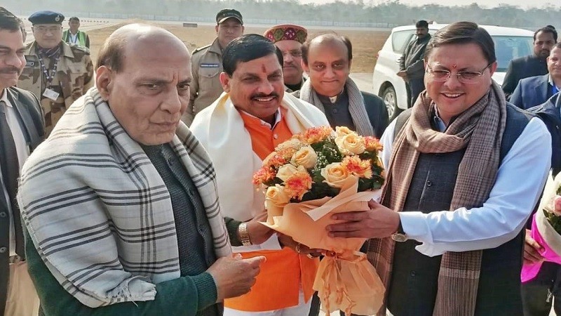देहरादून, खबर न्यू इंडिया (न्यूज़ डेस्क) : मुख्यमंत्री पुष्कर सिंह धामी ने केंद्रीय रक्षा मंत्री राजनाथ सिंह के देवभूमि उत्तराखंड आगमन पर जौलीग्रांट एयरपोर्ट पर स्वागत किया। इस अवसर पर मुख्यमंत्री ने मध्यप्रदेश के मुख्यमंत्री डॉ. मोहन यादव का भी देवभूमि आगमन पर स्वागत किया।