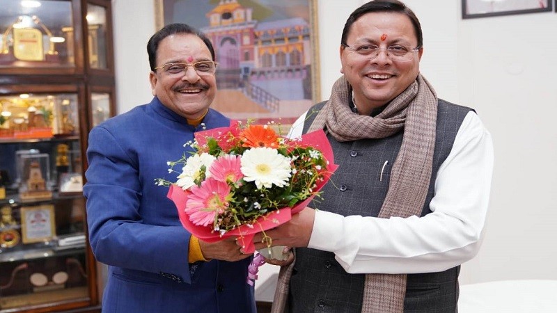 सीएम धामी से केन्द्रीय रक्षा एवं पर्यटन राज्य मंत्री अजय भट्ट ने की मुलाकात