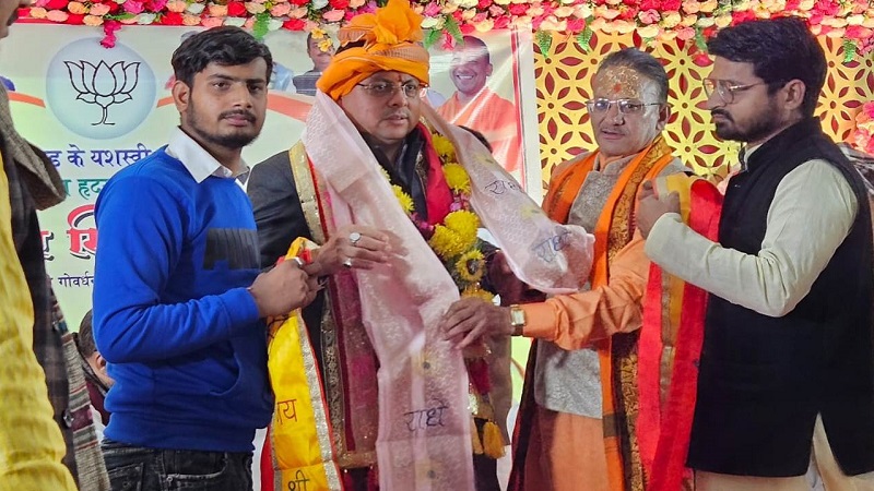 सीएम धामी का गोवर्धन मथुरा में हुआ सम्मान समारोह