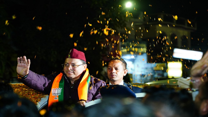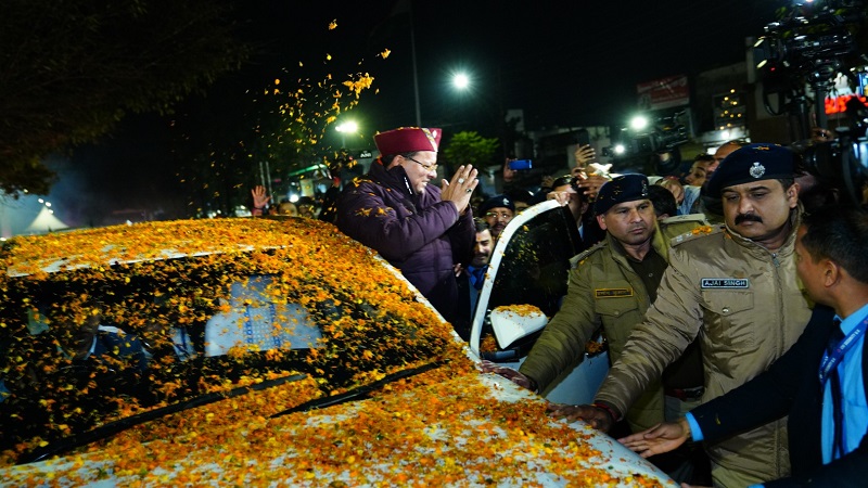 विधानसभा से यूसीसी बिल पारित होने पर सीएम धामी का पुष्पवर्षा के साथ हुआ स्वागत