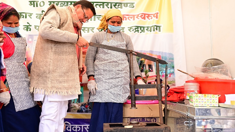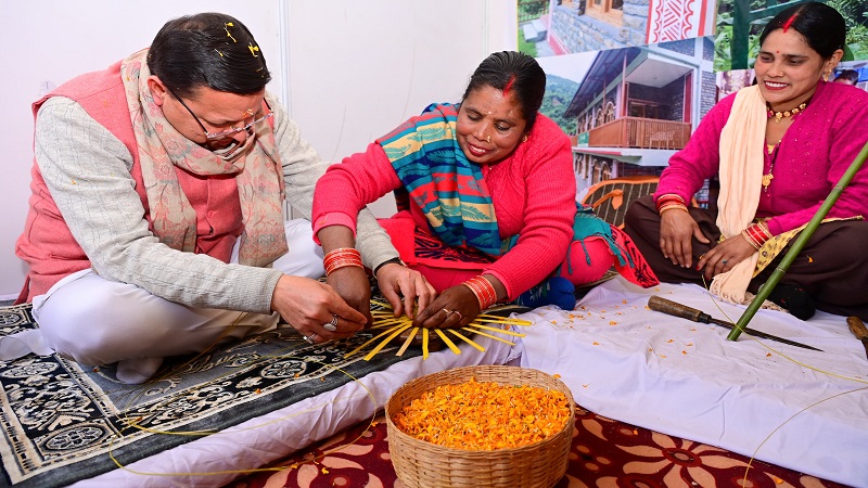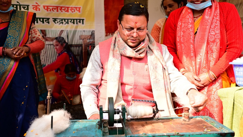 रूरल बिजनेस इंक्यूबेटर की ओर से लगे स्टॉल पर शिल्पकार के उद्यमियों एवं स्वास्तिक स्वयं सहायता की महिलाओं के साथ मिलकर मुख्यमंत्री धामी ने स्टोन पेन्टिंग करते हुए उनकी संस्था की जानकारी ली। वहीं उन्नती क्लस्टर संगठन, कालीमठ कोटमा की महिलाओं के स्टॉल पर कताई एवं बुनाई की। संगठन की अध्यक्ष सरिता देवी ने उन्हें हाथकरघा की पूरी विधि बताते हुए अपने संगठन की जानकारी दी। उन्होंने समूह के उत्पादों की सराहना करते हुए श्री केदारनाथ धाम एवं यात्रा मार्ग पर भी आउटलेट खोलने एवं पारंपरिक तरीके से बन रहे दोखे, शौल, टोपी आदि का खूब प्रचार करने को कहा।